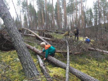Ruska is already starting to appear in Tahko’s nature; in southern Finland its arrival is even much later. We set out to admire the autumn nature for a trip to the Reittiö youth club. We toured n. 7 km of Huhkajankierros hiking and at the same time collecting oncoming delicacies. The first half of the route was a beautiful drier cloth forest, where pines grew mainly and the ground was covered with a thick layer of moss and lichen. The trail progressed over several Hiekkaharju and past marshes. The first thing that came to mind was that you had to come here yet to pull the route through. Without shoes. There is hardly an easier platform than a flat needle path.